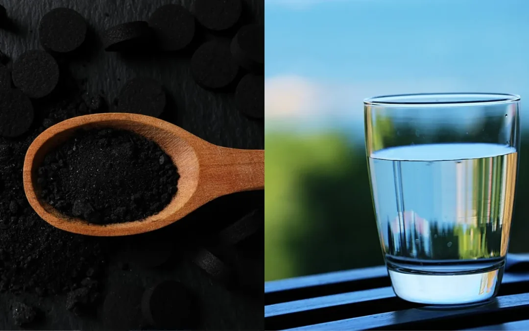 Entonces en el tema que nos ocupa el carbón activado adsorbe toxinas del agua : las moléculas quedan atrapadas a su superficie porosa.